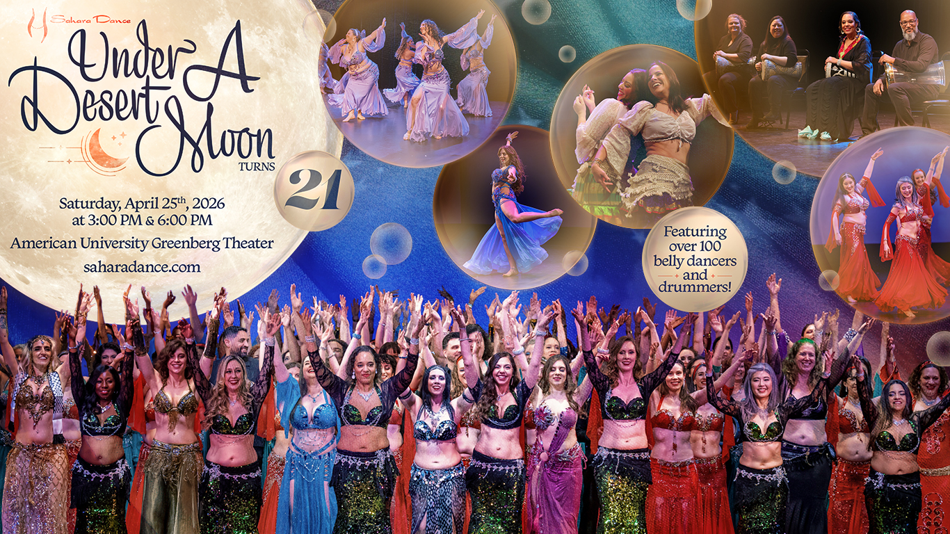 April 30, 2025Dear Sahara Dance community, Reflecting upon the 20th anniversary Under a Desert Moon show, I feel privileged to witness Sahara Dance’s growth and so proud to provide a creative home for countless dancers over the years. For this special commemorative show, I was so touched to see our tributes to… Read more