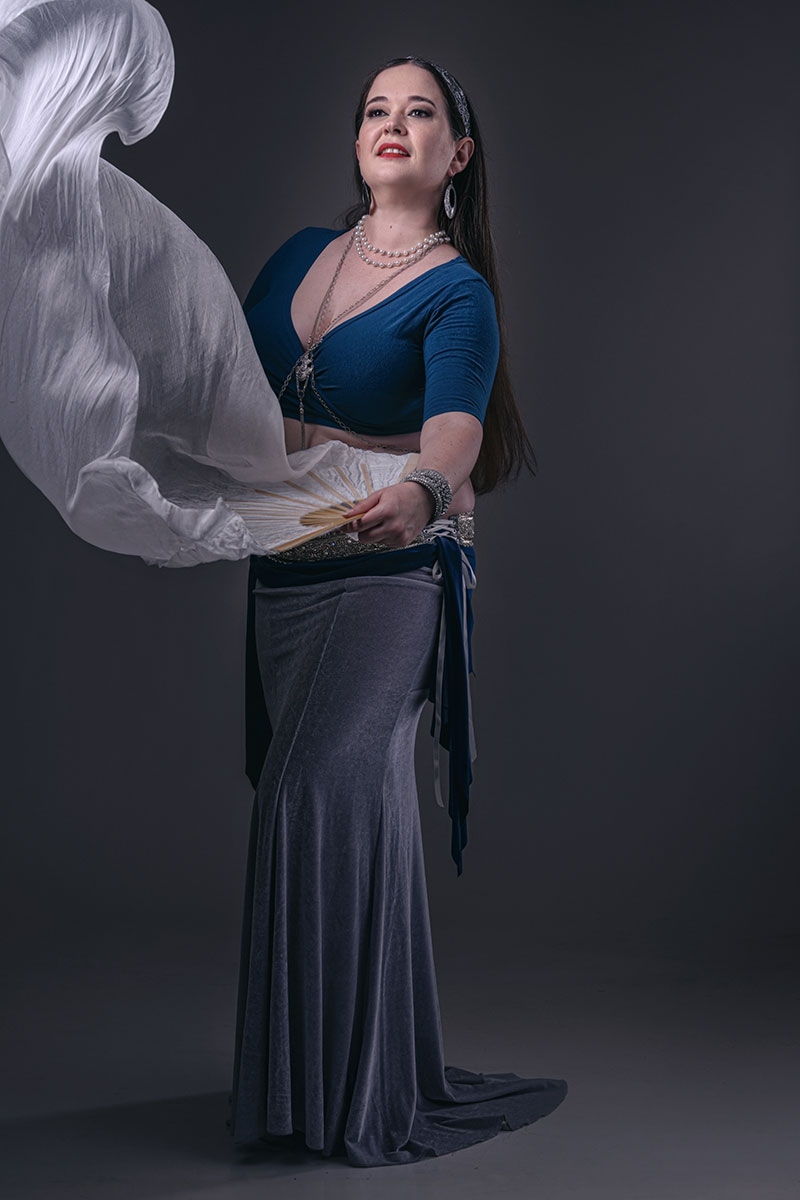 For the first part of the semester, you will discover how to use the veil to accentuate your movements, add drama to your performance, and enchant viewers with its ethereal beauty. From classic Egyptian entrances to American Cabaret style wraps and flourishes, you’ll learn the techniques to enhance your artistry and extend your dance through the prop.